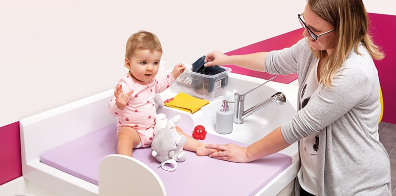 Accueillir un enfant, en prendre soin et rassurer les parents, c’est essentiel pour les professionnels de santé et de la petite enfance. Et depuis 30 ans, notre offre est sans cesse repensée en étroite collaboration avec les utilisateurs de nos mobiliers. Nos meubles de change sont leurs outils de travail, conçus pour le bien-être de l’enfant dès la naissance et jusqu’à 3 ans, mais aussi et surtout pour accompagner les gestes des professionnels au quotidien.