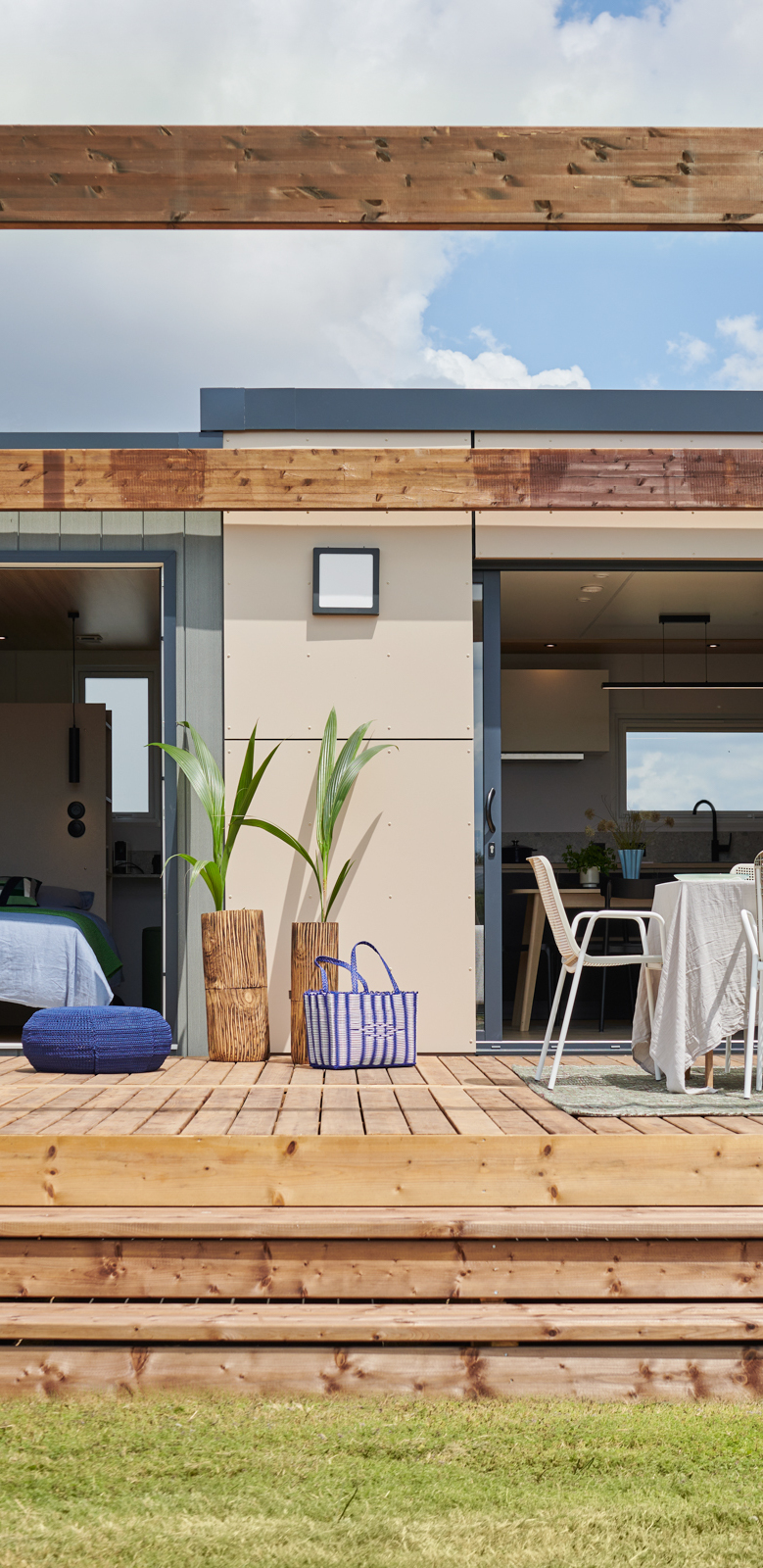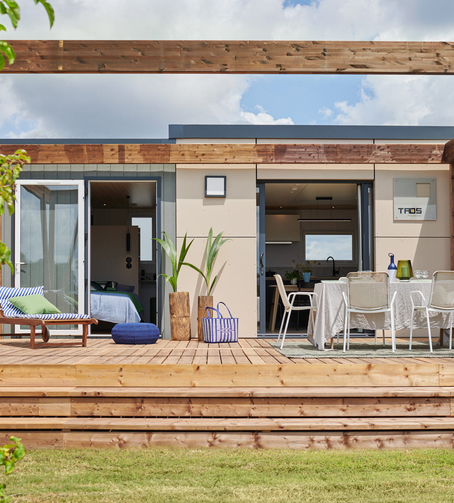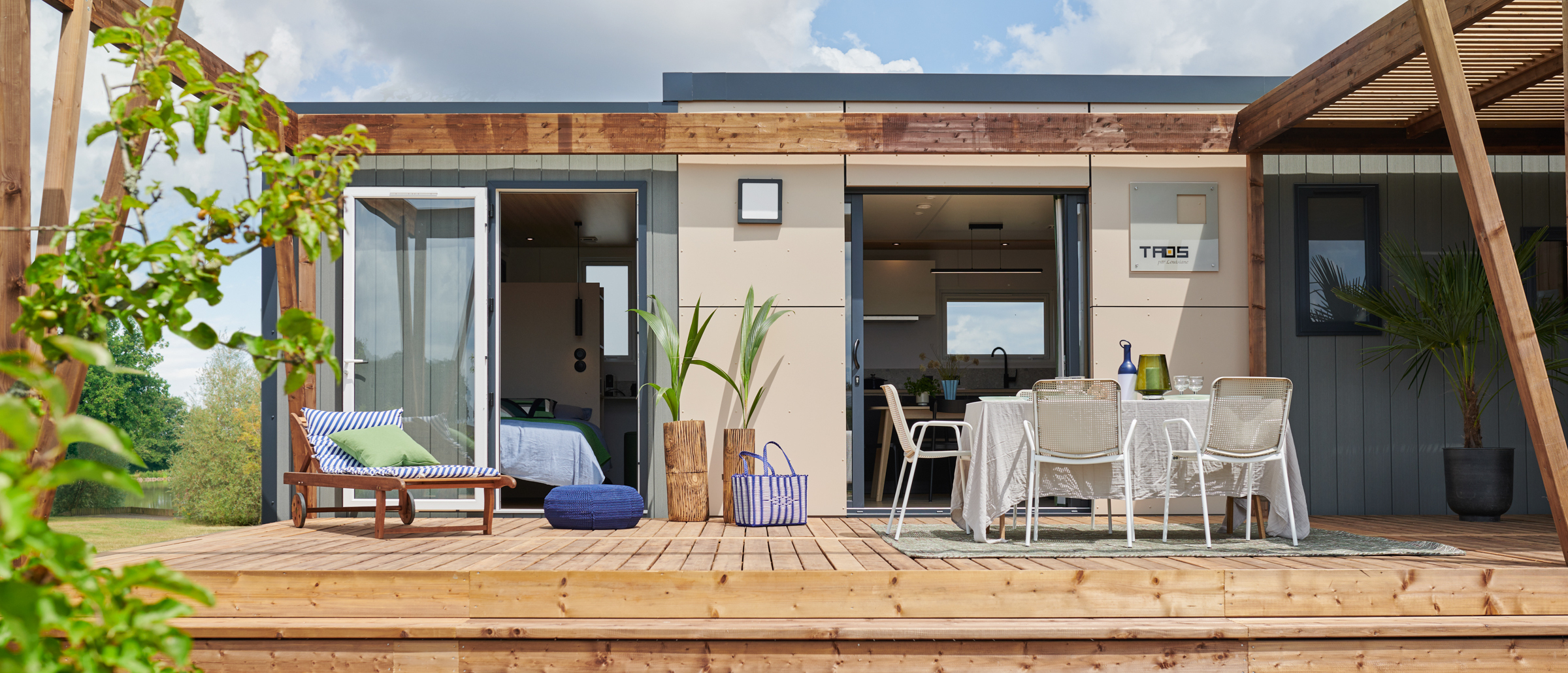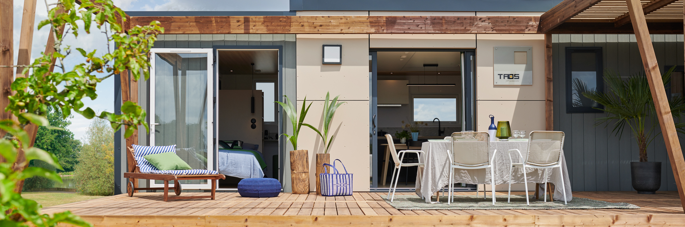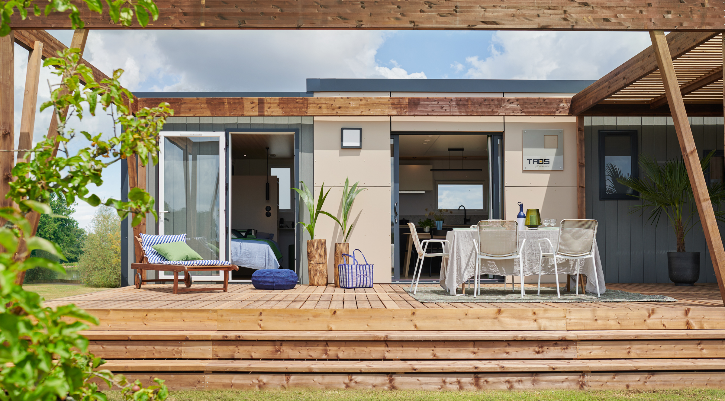 Sunshine outdoor propose des terrasses et accessoires en harmonie avec le design des mobil-homes Louisiane.